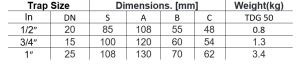 Differential pressure is the difference between the inlet and outlet pressure of the trap.