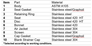 Dimensions & Weight Codes and StandardsDischarge Capacity Parts/ MaterialSpeification THERMODYNAMIC DISC TRAP Easy to check cyclic operation Designed to fail open Self-draining (vertically mounted) Energy efficient sub cooled operation Hardened, rugged stainless steel internals Installation in any position Single moving part Unaffected by freezing Unaffected by water hammer Designed for superheat دانلود کاتالوگ
