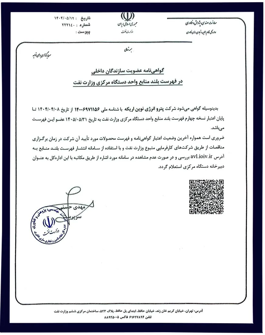 گواهینامه کیفیت صنایع نفت پتروشیمی گاز